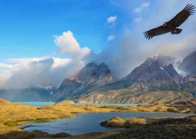 We maken een binnenlandse vlucht naar Puerto Natales in Pategonië. Nadat we zijn ingecheckt in ons hotel gaan we in de namiddag het park Torres del Paine in. Onze gids kent het park op zijn duimpje en weet de mooiste plekken met de beste uitzichten. Ook gaan we op zoek naar guanacos, flamingo’s, ibissen, rhea’s (loopvogels), grijze vossen en ander wild. Bovendien hebben we een speciale locatie op privé terrein waar we condors kunnen zien en fotograferen. Het is van het weer en andere omstandigheden afhankelijk of en wanneer we naar deze locatie gaan. Maar we hebben 2 kansen: vandaag en dag 9 van het programma. En als er een mooie zonsondergang verwacht wordt dan nemen we deze uiteraard ook mee.