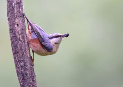 Op één van de laatste dagen bezoeken we een hut met uitzicht over een vallei, speciaal voor de koekoek. De geelgors is de eerste die zich laat zien. Daarna verschijnt de grote bonte specht. Die denkt dat er in onze hut veel meer te beleven is en begint heftig op het raam en het dak te kloppen. Plotseling duikt de hop heel dichtbij op, en blijft even zitten zodat we wat foto’s kunnen maken en verdwijnt even later weer. En dan, uit het niets, zit daar de koekoek man imposant met afhangende vleugels en zijn sperwerachtige borst. Wat een moment! Hij kijkt wat wantrouwend rond maar heeft gelukkig onze aanwezigheid niet door. Ook verschijnen er nog wat bijeneters op de set en dat maakt het feest bijna compleet. Om het voor mij helemaal perfect te krijgen zou eigenlijk de groene specht nog moeten verschijnen. Dat lijkt echter een beetje mijn obsessie te worden want waar ik ben komt de groene specht niet. Mijn groene specht moment moet ik nog tegoed houden.