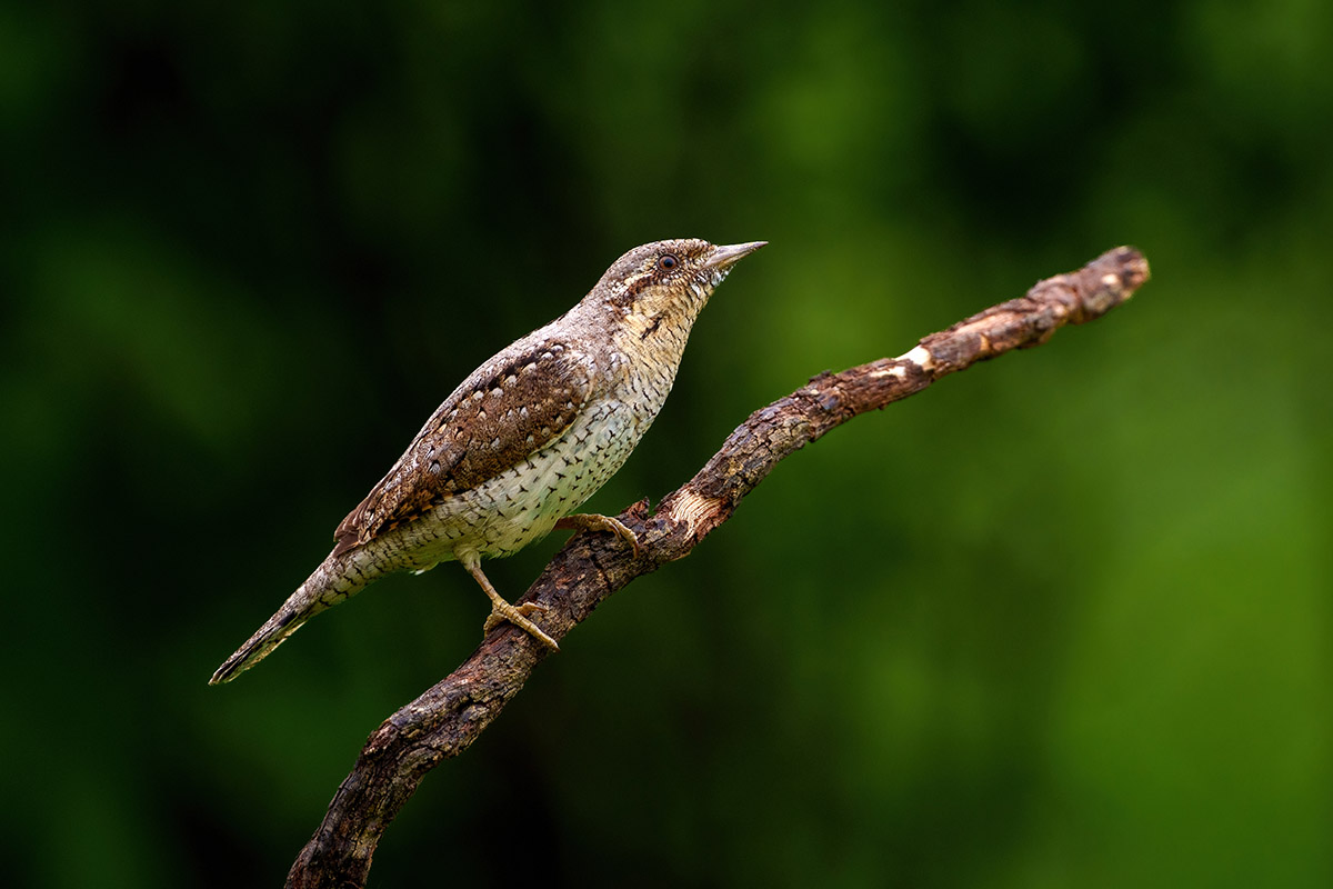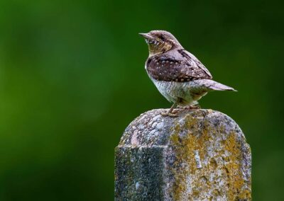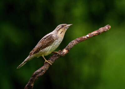 Inmiddels arriveren mijn fotomaten. Er staan twee schuiltenten. Mijn reisgenoten gaan in de tweepersoons en ik in de andere. Er staat een stuk boomstam met een holte erin waar de draaihalzen al een paar jaar huizen. We kunnen deze vanaf ooghoogte mooi fotograferen. Eën van de vogels laat zich een paar keer prachtig zien. Van zó dichtbij ga je ze niet vaak krijgen!