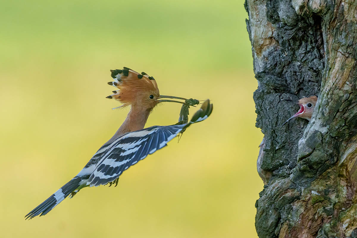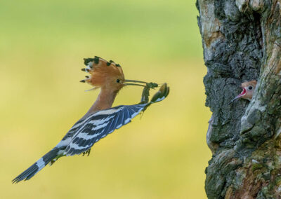 De volgende ochtend staat voor mi, in het teken van de hop. Ik ga samen met Erwin. We worden vroeg opgehaald en rijden naar een idyllische vallei. De hut kijkt uit over het nest en al snel verschijnt de hop met een veenmol, een insectensoort, in zijn snavel. Hij roept naar zijn partner, het geluid echoot sprookjesachtig door de vallei. We zien het hele tafereel: roepgedrag van echtpaar hop, een klein conflict tussen de twee en zelfs een jong dat nu en dan met het kopje uit het nestgat piept. In de middag bezoek ik samen met Carla een hut met een klein vijvertje ervoor. Hier fotograferen we onder andere de zomertortel, de koekoek wat verder weg en zo’n tien tot vijftien andere soorten kleinere vogeltjes.