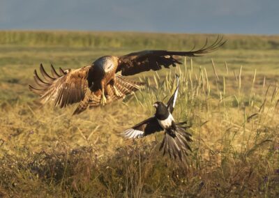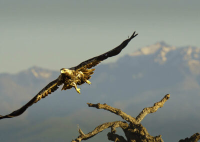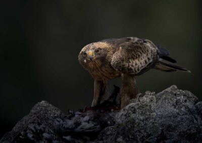De Spaanse keizerarend is met recht de keizer onder de roofvogels in deze contreien. Een majestueuze vogel die op een afstandje de drukte van de zwarte wouwen volgt voordat hij ook komt eten. Met de Sierra de Gredos op de achtergrond maak je prachtige foto’s van deze grote roofvogel. Er zijn niet veel mogelijkheden in Spanje om deze vogels van zó dichtbij te kunnen fotograferen.