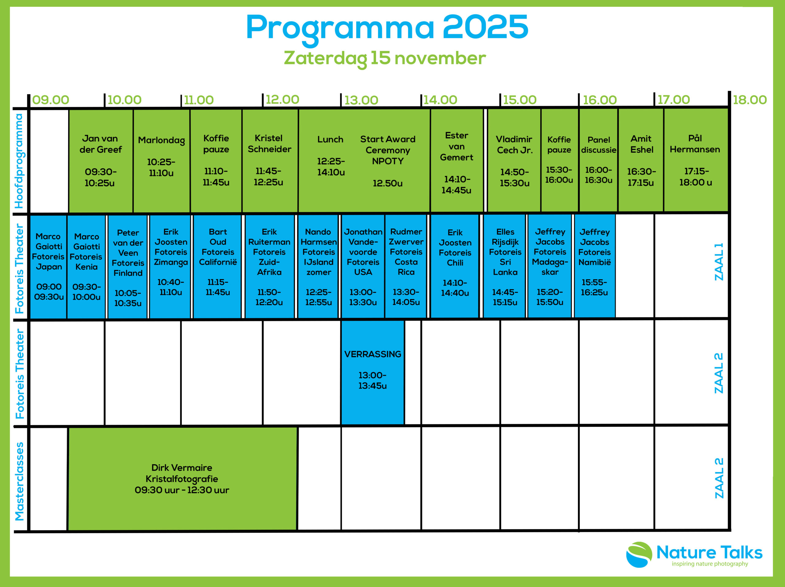 - Award Ceremony Nature Photographer of the Year 2025 | 12:50 uur (eten mag in de zaal)